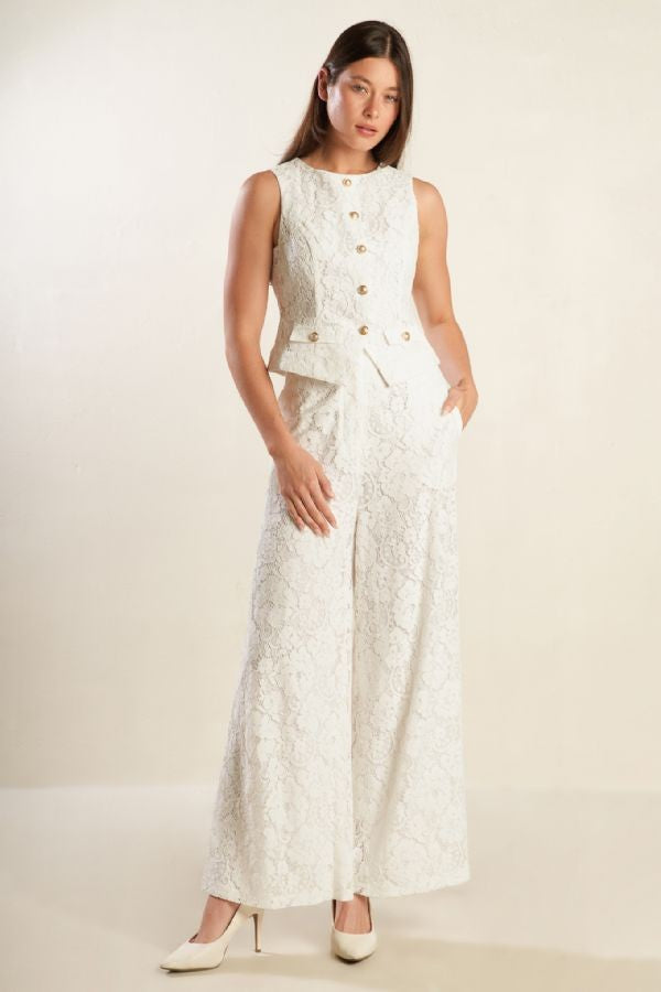 A Woven Lace Vest & Pants Matching Set