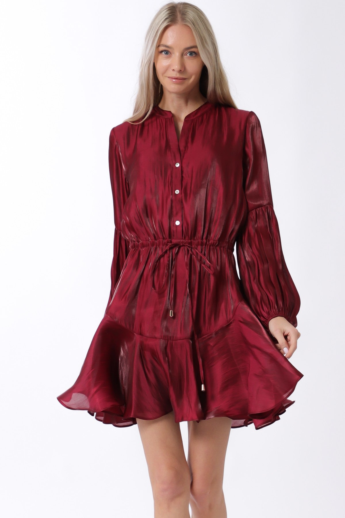 Long Sleeve Button Down Tie Mini Dress