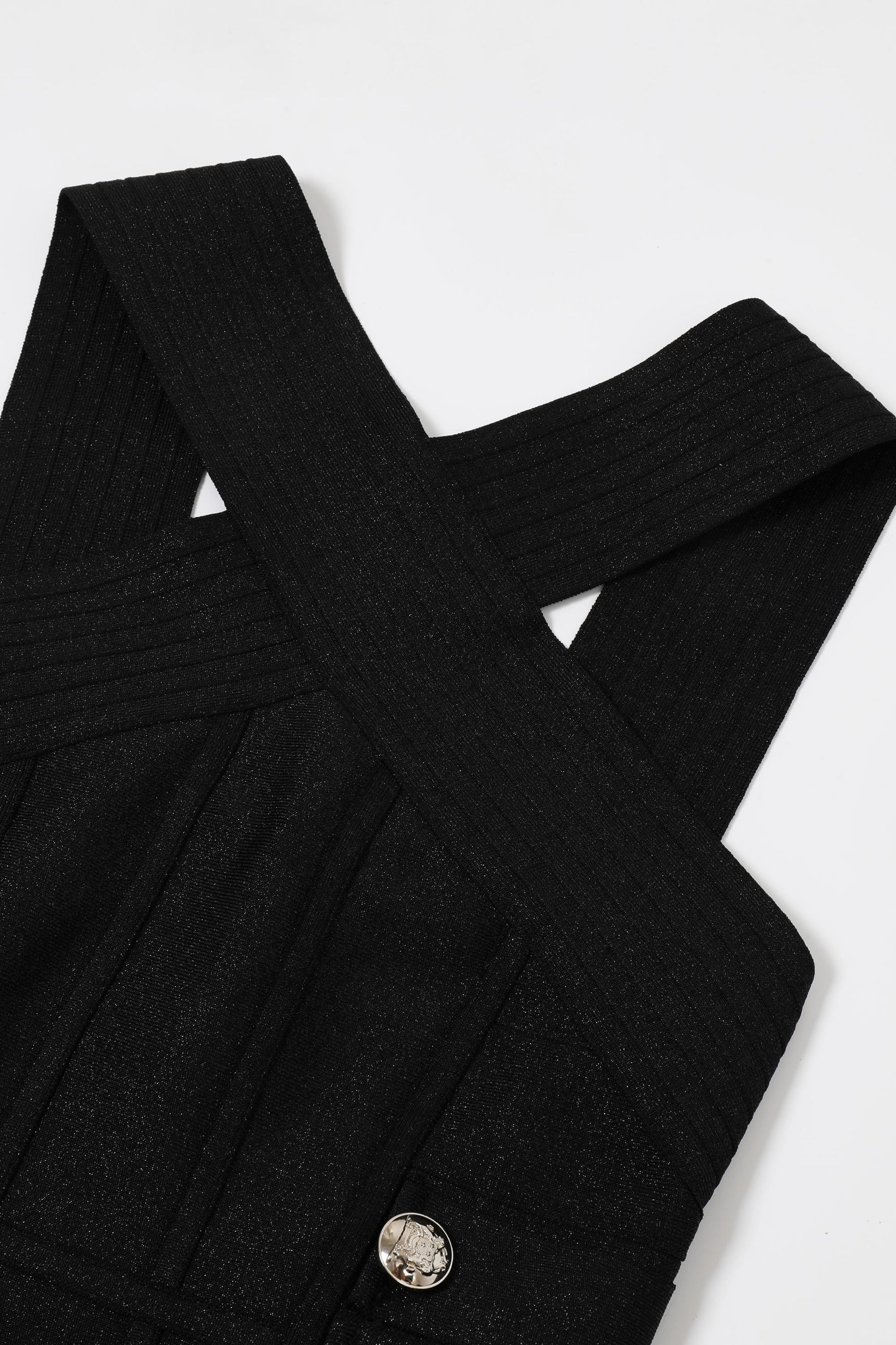 Metallic Bandage Slvls Dress W/ Gold Buttons
