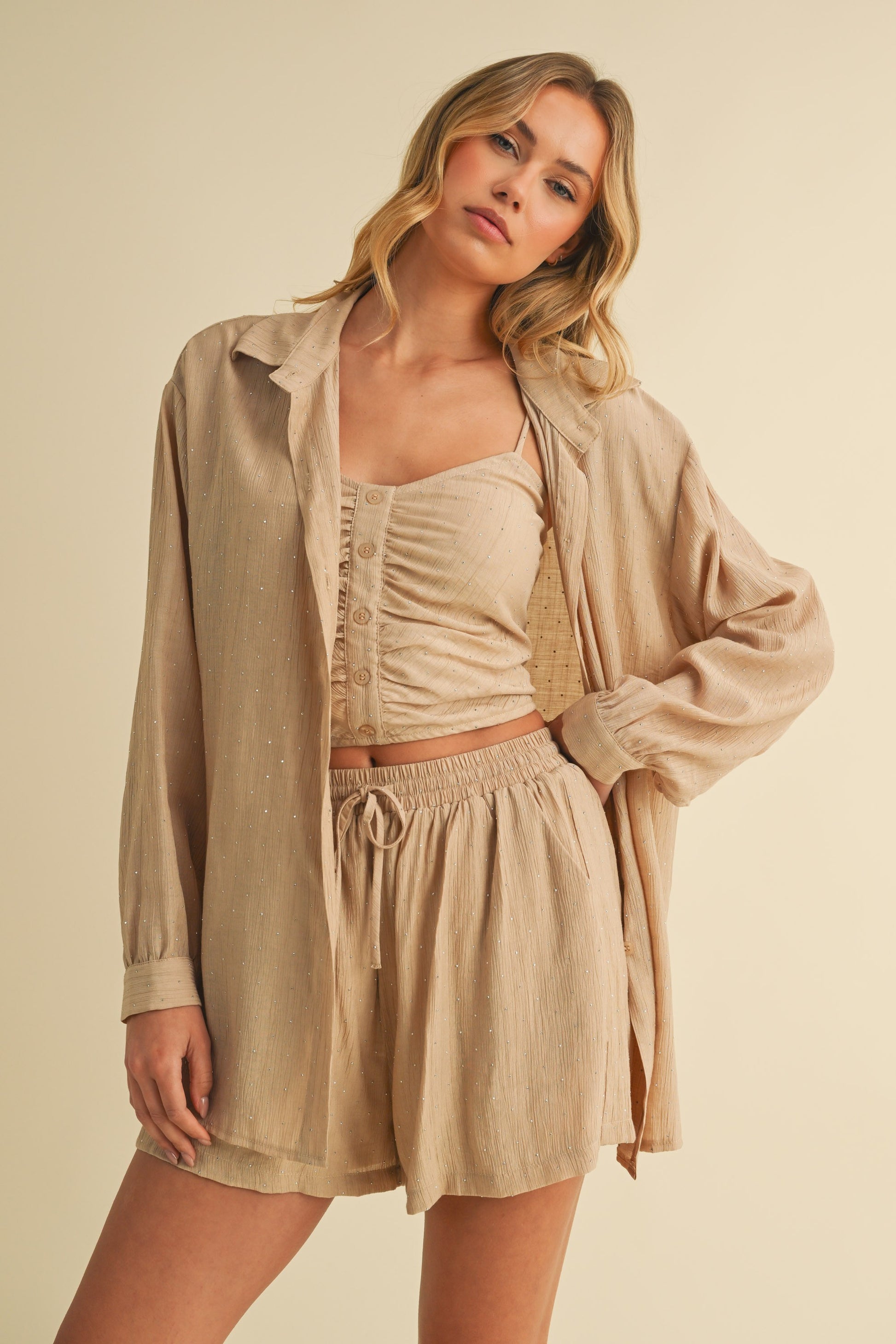 LONG SLEEVE BUTTON DOWN, TOP AND SHORTS